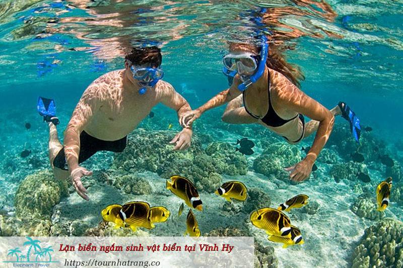 Sau đó, tàu đưa bạn đến điểm lặn ngắm san hô. Bạn sẽ được trang bị kính lặn, đồ bơi, ống thở, bình oxy,… để bắt đầu hành trình lặn biển. Nếu ngại bơi dưới nước, bạn có thể ngắm san hô bằng tàu đáy kính hiện đại.